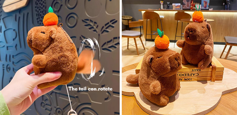 Il portachiavi di peluche Capybara è realizzato in tessuto lussuoso di alta qualità e riempito con cotone PP. Non solo presenta vividamente l'aspetto carino di Capybara, ma funge anche da portachiavi. Può essere usato come decorazione e ha funzioni pratiche. Questi prodotti sono fabbricati da Zebraparty® Plush Factory e hanno superato la certificazione di sicurezza.