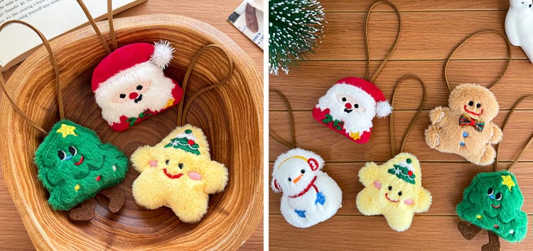 Questa serie di portachiavi natalizi presenta sette classici personaggi natalizi, tra cui Babbo Natale, omino di pan di zenzero, pupazzo di neve, albero di Natale, mela, stella e renna. Ognuno combina elementi classici natalizi con squisita fattura ed è pieno di creatività e fascino infantile.