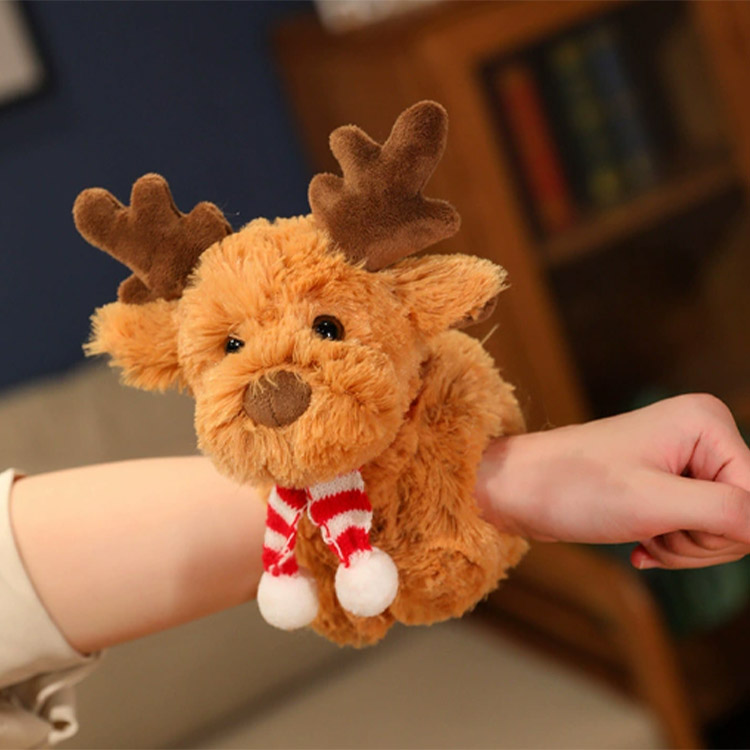 La forma complessiva dell'alce è in posizione seduta, con una dimensione di 30 cm. Questo peluche può anche essere trasformato in un braccialetto a forma di anello a forma di braccio. Può circondare strettamente il polso, lo zaino, ecc. del bambino. Tutto quello che devi fare è tenerne entrambe le estremità e appiattirlo, quindi mirare a qualsiasi parte e premere verso il basso per formare un morbido abbraccio di peluche, ha un'elevata giocabilità.
