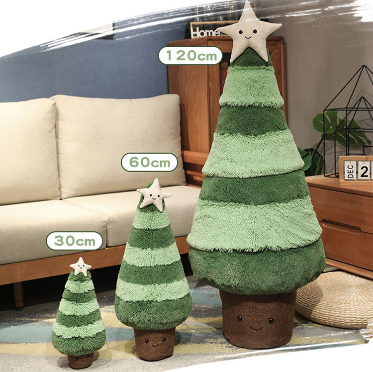 Questo giocattolo di peluche per alberi di Natale è un bestseller per Natale. È disponibile in quattro stili e tre dimensioni dei giocattoli: 30 cm, 60 cm e 120 cm. Le dimensioni dell'albero di Natale possono essere scelte secondo necessità. Può essere posizionato in diverse posizioni. Ad esempio, uno di 30 cm può essere posizionato su un'auto o su una finestra a vena. Uno più grande può essere collocato nel soggiorno come decorazione natalizia. Alcuni piccoli ornamenti possono anche essere decorati sull'albero di Natale, il che è molto festoso.