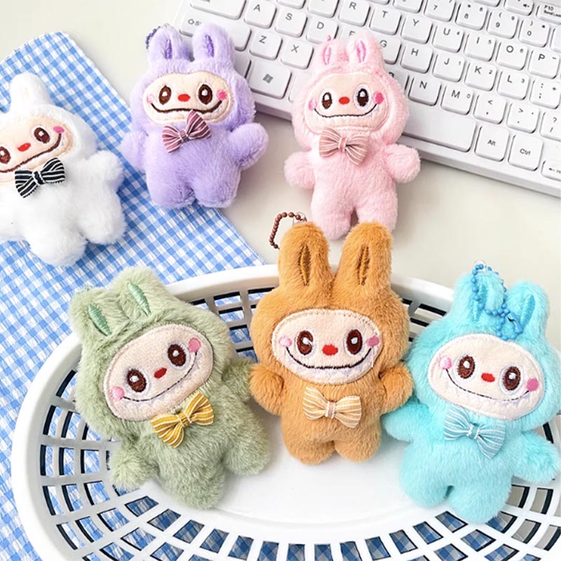 Labubu, come classico giocattolo alla moda sotto Pop Mart, si basa sul "Forest Elf". Il ciondolo nella foto, pur mantenendo il riconoscimento dell'IP, ha subito alcuni cambiamenti e la forma generale sembra molto carina. Mettere un labubu in un "cappotto a forma di coniglio" rende le orecchie e la forma assomiglia a quelle di un coniglio, e porta anche una nuova sensazione. Sembrava così gli occhi, le guance di rosso, la bocca come in un sorriso, sembravano molto adorabili. Inoltre, il petto di Labubu ha anche decorato con diverso fiore di farfalla.
