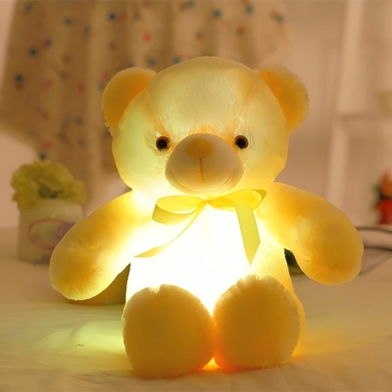 Questo orsacchiotto a Led non è solo un normale giocattolo di peluche. È dotato di un sistema di illuminazione intelligente. La sua funzione di illuminazione unica può fungere da "lampada atmosferica" di notte, fornendo luce morbida e portando comfort psicologico. Può essere usato come oggetto decorativo, che offre valore emotivo ed è molto adatto come regalo. Può anche essere usato per decorare un letto o come cuscino di un bambino. Questo peluche orsacchiotto trasmette un'atmosfera emotiva rilassante, calda e interessante. Le nuove caratteristiche aggiunte a questo giocattolo migliorano l'esperienza dell'utente.