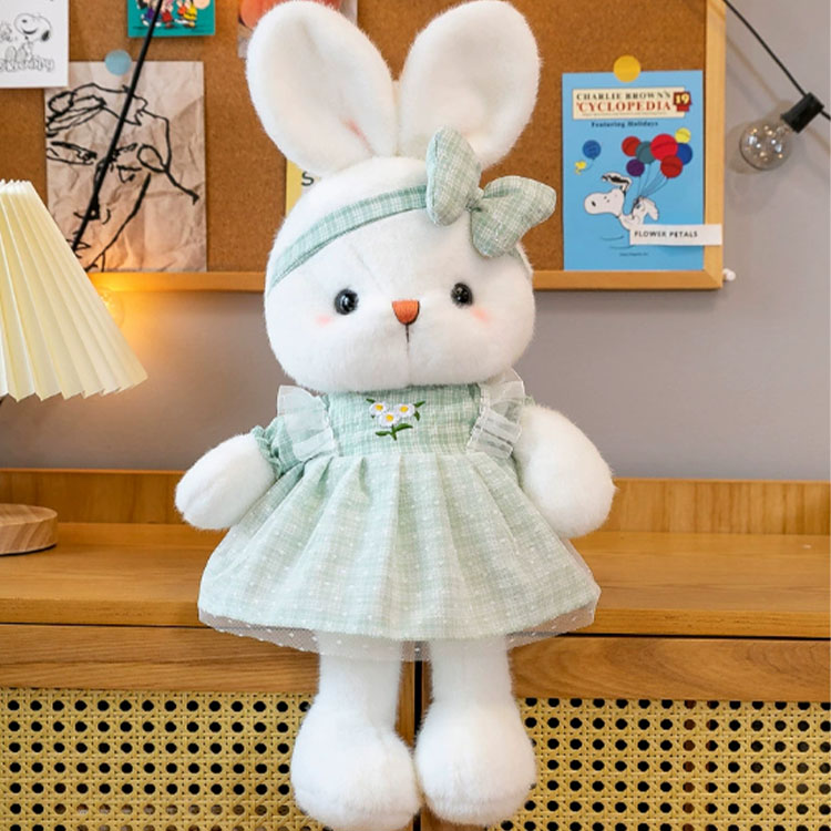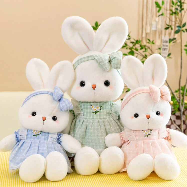 Il coniglietto pasquale ripieno è avvolto in tessuto peluche corto di alta qualità e riempito con cotone PP all'interno. Le gonne che indossano sono ancora più sorprendentemente belle. Il suo aspetto carino ha vinto il favore di molti clienti. Questi prodotti di alta qualità sono prodotti da Zebra Party® Plush Factory e hanno superato la certificazione di sicurezza.