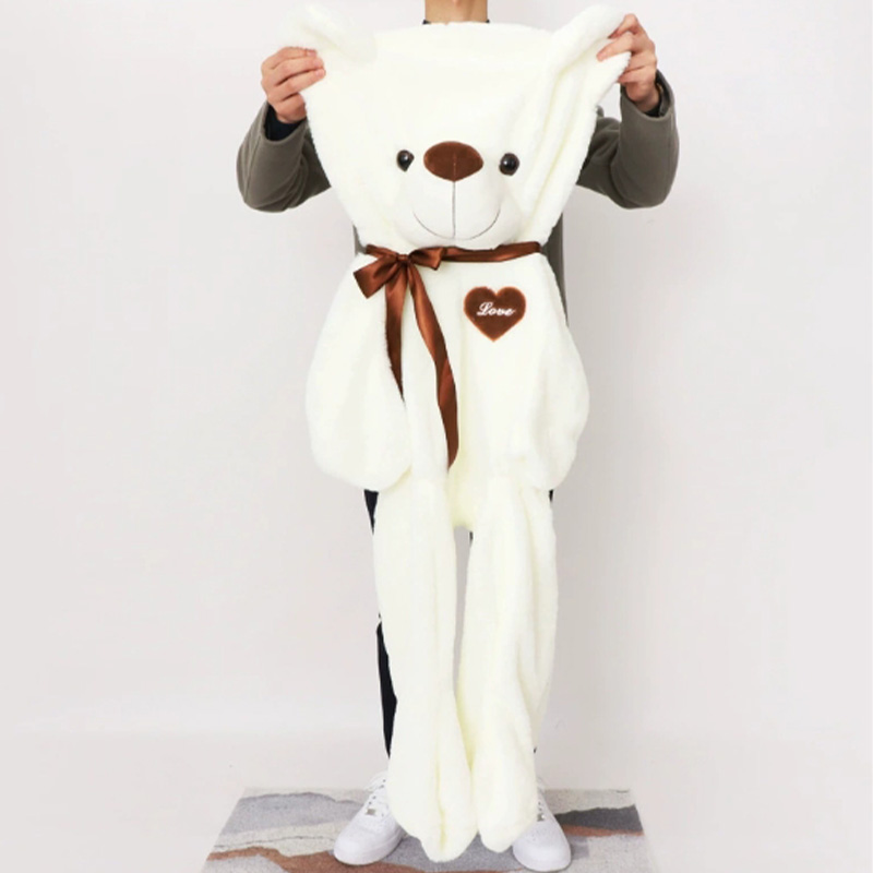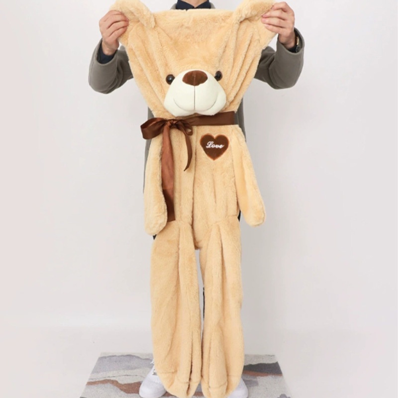 Questo è un orso di peluche di grandi dimensioni. È disponibile in sette dimensioni: 60 cm, 80 cm, 100 cm, 120 cm, 140 cm, 160 cm e 180 cm. Se è adeguatamente riempito, il volume sarà molto grande e ciò comporterà un notevole costo di trasporto. Quindi questo peluche orso della pelle giocattolo è molto popolare tra tutti.